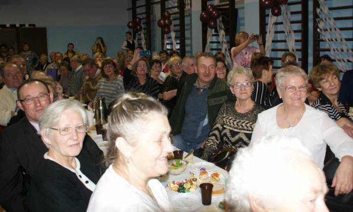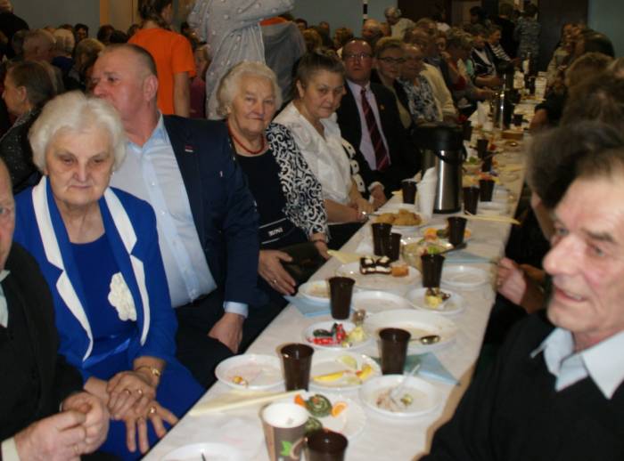 Seniorzy otrzymali życzenia od władz gminy, a następnie mogli integrować się przy poczęstunku.