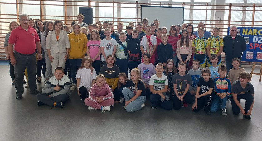 Podczas spotkania Eliza opowiedziała młodszym koleżankom i kolegom o swojej karierze sportowej, sukcesach oraz porażkach. – Przyznała, że jej przygoda z kolarstwem zaczęła się 6 lat temu od treningów w tej sali sportowej. Na spotkaniu zaszczycili swoją obecnością również rodzice naszej złotej medalistki, państwo Zofia i Piotr Rabażyńscy. Nie zabrakło także jej pierwszego trenera – pana Wiesława Młodziankiewicza, który dostrzegł w niej nieprzeciętny talent – mówi dyrektor ZS w Zbójnie Hanna Kułak.