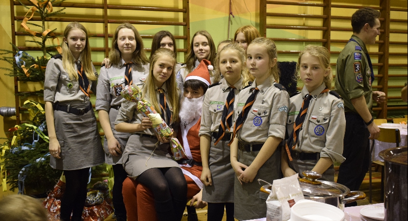 – Co roku, tuż przed Świętami Bożego Narodzenia organizujemy biwak połączony z wigilią – mówi przewodnik Karol Grąbczewski, komendant biwaku oraz drużynowy 44 GDDH „Łaziki”. – Każdy z harcerzy przyniósł danie wigilijne. Mieliśmy pierogi, barszcz, dania rybne oraz różnego rodzaju sałatki i ciasta świąteczne. Nie zabrakło prezentów i postaci mikołaja. Bardzo dziękujemy dyrekcji Zespołu Szkół nr 1 im. Anny Wazówny za udostępnienie szkoły.