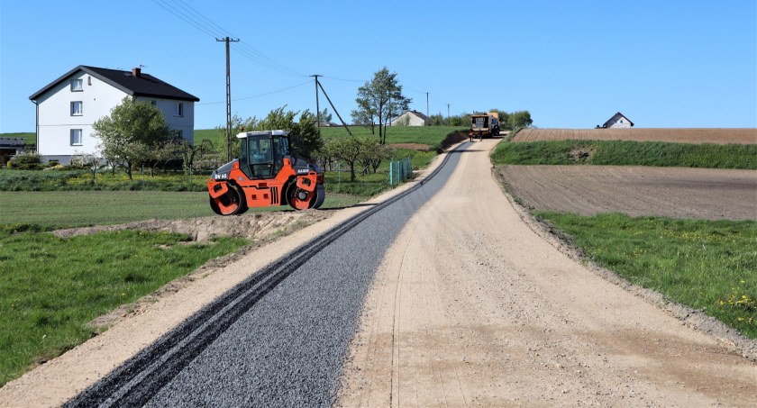 Zbliża się natomiast zakończenie remontu drogi na odcinku Radomin-Bachórz z kierunku miejscowości Gaj oraz przebudowa drogi gminnej zlokalizowanej na działce nr 223 w miejscowości Radomin. Na obu drogach dotychczas położono gruz oraz została wykonana podbudowa 15 cm + 5cm. Obecnie trwają prace związane z utrwalaniem nawierzchni drogi emulsją asfaltową i grysami 5-8 mm.