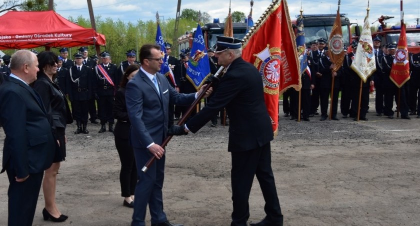 Przed budynkiem OSP przy ulicy Strażackiej odbył się uroczysty apel, podczas którego dokonano przekazania nowego sztandaru oraz poświęcono samochód ratowniczo-gaśniczy z przyczepką. Podczas gminnych uroczystości majowych zasłużeni działacze i członkowie OSP otrzymali za swoją nienaganną służbę społeczną zaszczytne wyróżnienia.