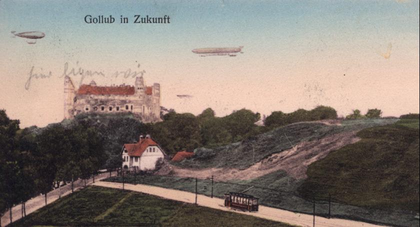 Na jednej z niemieckich pocztówek Golubia umieszczony został sterowiec. Widokówka zatytułowana jest „Golub w przyszłości”. Czym były sterowce i dlaczego dziś nie latają po niebie zamiast samolotów i śmigłowców?