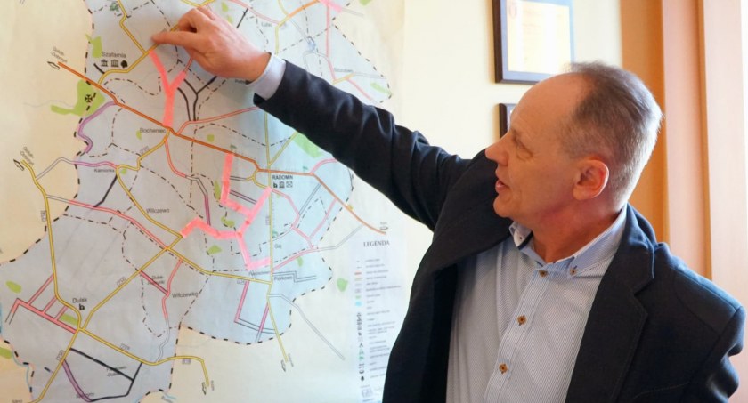 – Nie miałem pod ręką innego mazaka, to zaznaczyłem nowe drogi na różowo – śmieje się Piotr Wolski. I faktycznie różowego na mapie sporo. – I to wszystko tegoroczne budowy – chwali się wójt. Ale to nie tylko jego zasługa. Radni gminy Radmin wraz z wójtem i pracownikami urzędu wspólnie wypracowali, o które drogi najlepiej postarać się w ramach Nowego Polskiego Ładu.